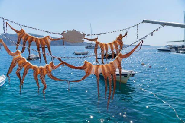 La práctica de secar pulpos en Grecia tiene raíces profundas en la historia marítima del país. Los griegos, siendo una civilización antigua con una fuerte conexión con el mar, desarrollaron métodos eficaces para conservar y disfrutar de los frutos del océano. En épocas en que la refrigeración no existía, el secado al sol era una de las pocas formas viables de preservar el pulpo y otros mariscos.